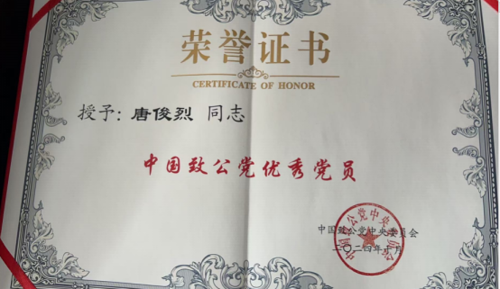 唐俊烈董事长因在做优做强做大企业、科技创新提升企业竞争力、节能降耗绿色发展、延链补链深耕制造业、承担社会责任、热心公益事业、积极参政议政等方面的突出表现,被评为中国致公党员优秀党员,并作为代表出席中国致公党成?br>100周年庆祝大会,既是唐董事长个人的荣誉,也是对其经营企业的认可和鼓励?br>